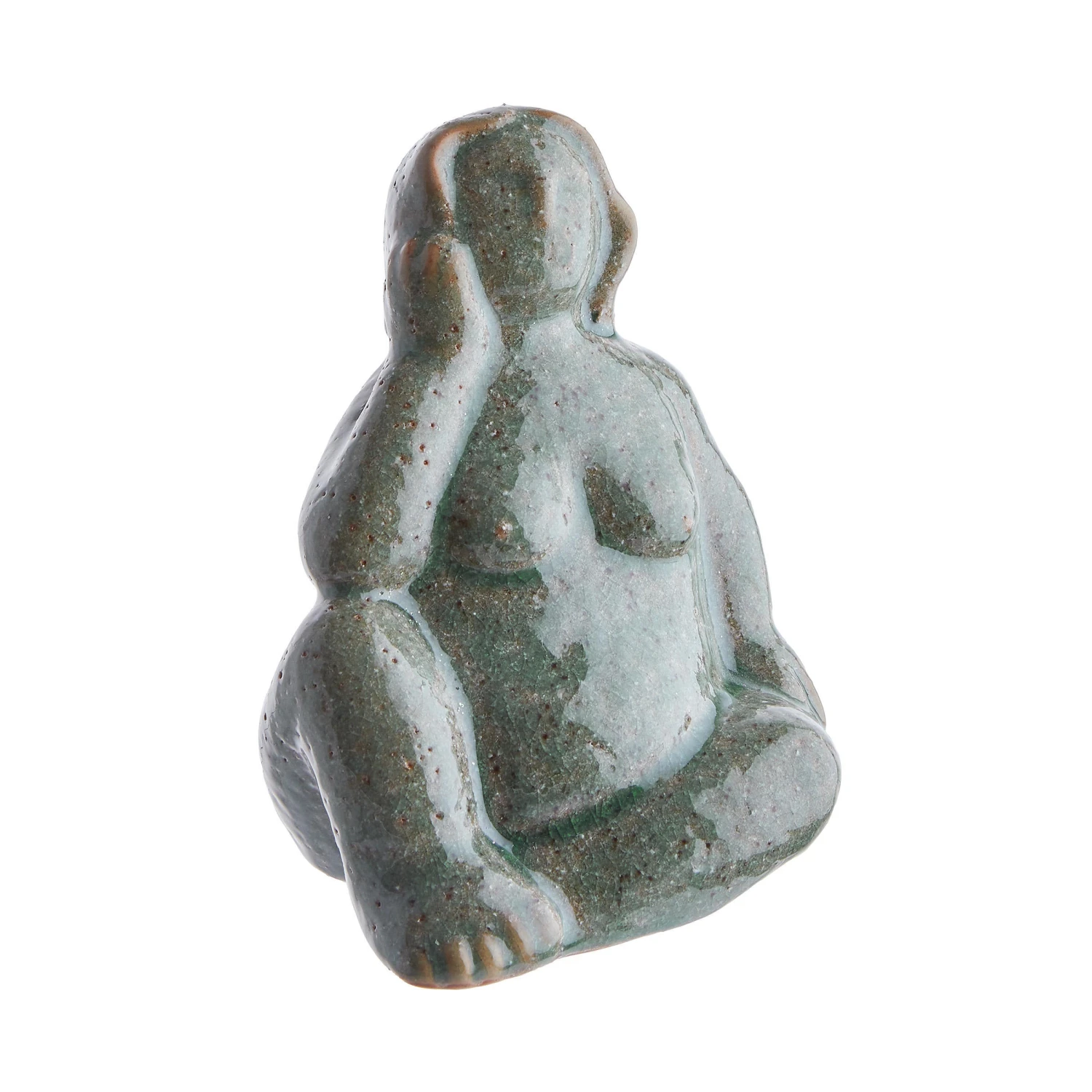 Die natürliche Venus mit fraulichen Rundungen gilt seit Ewigkeiten als Schönheitsideal. Auch die Pose Deko Statue feiert diese authentische Form der Weiblichkeit. Aus Steinzeug gefertigt und in dunklem Grün gehalten, schmückt das kleine Deko Objekt Ihr Schlafzimmer, Ihr Bad oder den Wohnbereich.