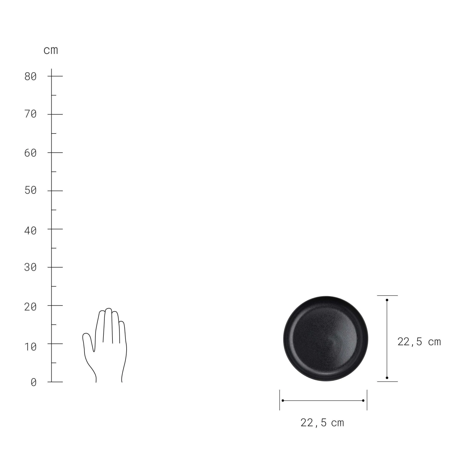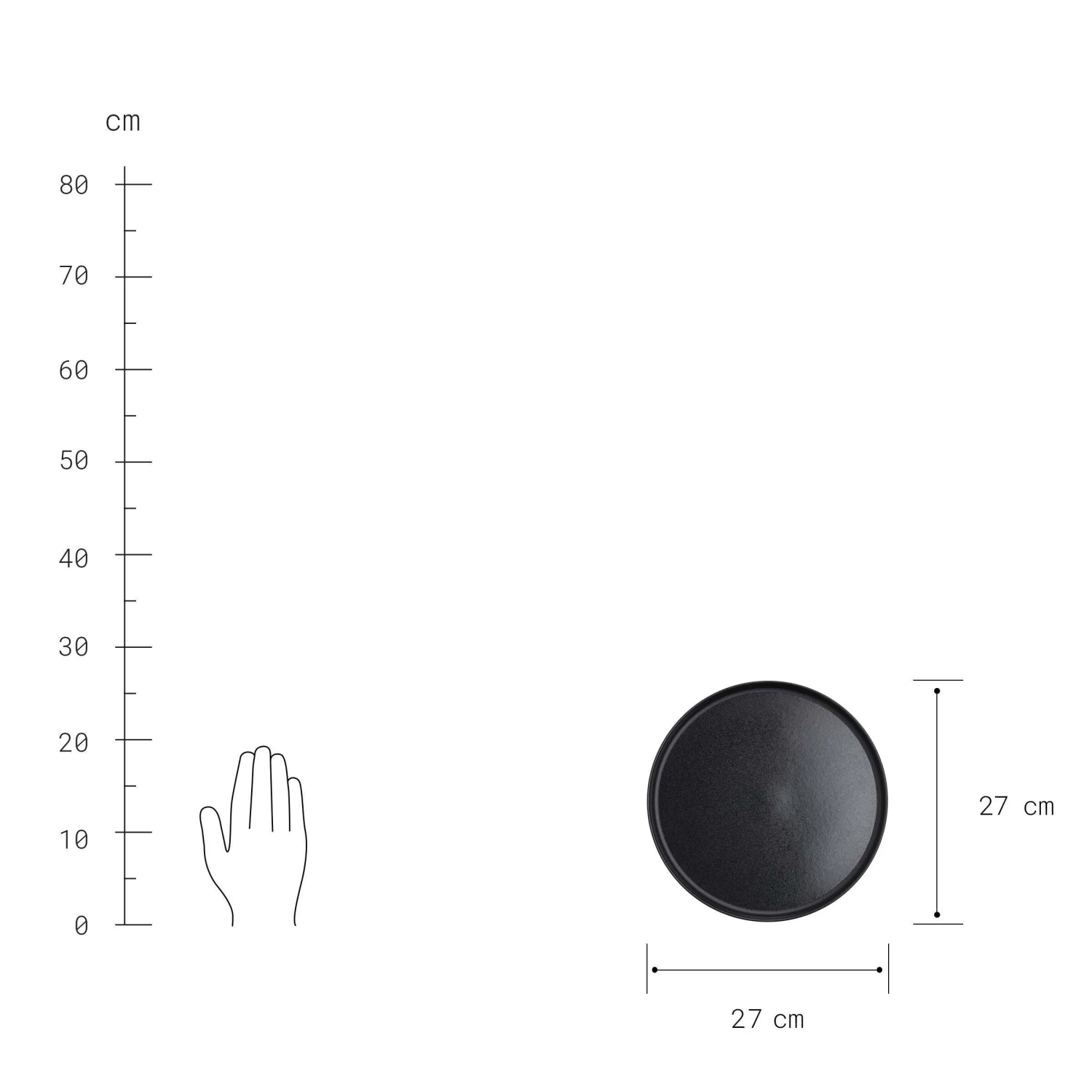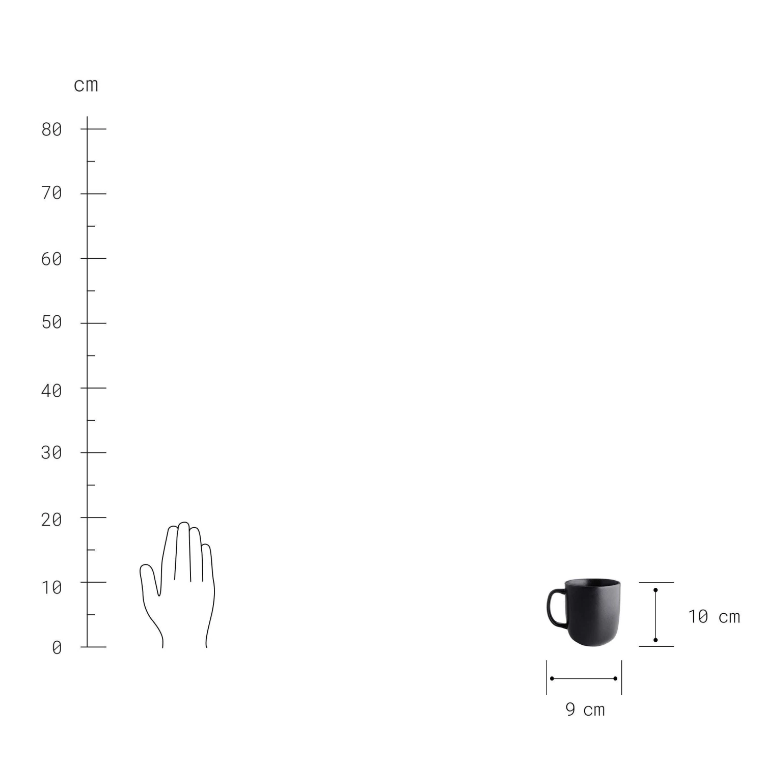 Dinnerteller: Ø 27 cm, Höhe 1,7 cm, Frühstücksteller: Ø 22,5 cm, Höhe 1,7 cm, Teller tief: Ø 22,5 cm, Höhe 3,5 cm, Tasse: Ø 9 cm, Höhe 10 cm, Füllmenge: 400 ml