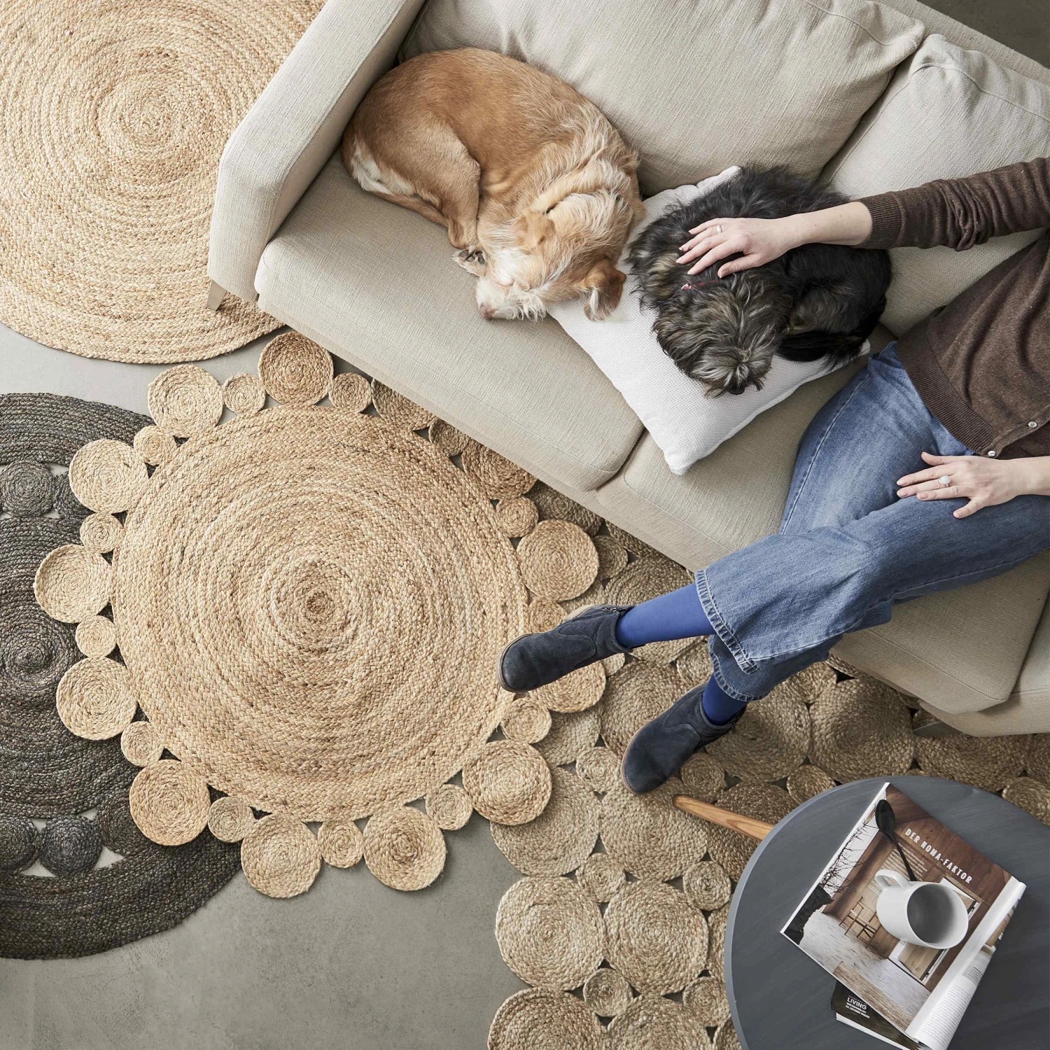 Beim runden All Nature Hanf-Teppich gewebt mit Ornamenten in Natur dreht sich alles um einen bewährten Klassiker, die Nutzpflanze Hanf. Sie liefert das robuste, schmutzabweisende und antistatische Material, das diesen Teppich so strapazierfähig und pflegeleicht macht. Mit diesen Qualitäten eignet er sich auch für Ihren Flur oder Ihr Wohnzimmer, und dort kombinieren Sie ihn beispielsweise mit dem Skandi-Style, dem Boho-Look oder dem französischen Landhausstil. Gefertigt ist der Teppich übrigens in Handarbeit, und so ist jeder einzelne ein Unikat, was Kenner an kleinen Abweichungen in Farbe und Design erkennen. Weitere Varianten erhältlich.